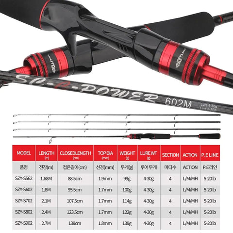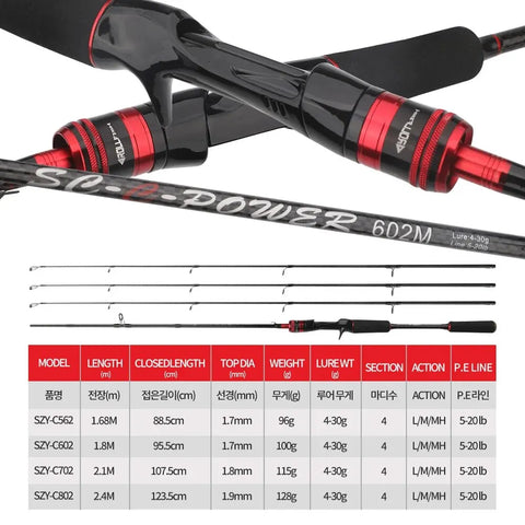 3Tips Power L/M/MH Spinning Casting Carbon Fiber Lure Fishing Rod